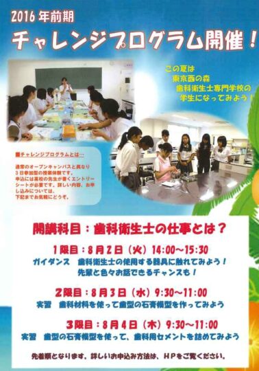 チャレンジプログラムとは、通常の体験入学とは違い、3日連続した実習等90分授業です。