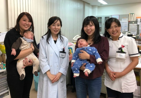 今日は赤ちゃんも一緒です! 近況報告に先生たちもうれしそう。また遊びにきてね♪