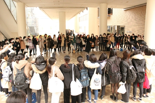 理事長の「東京西の森歯科衛生士専門学校ファイト!」のかけ声に 、みんな「オー!」と応えます。感極まって泣いてしまう学生も…