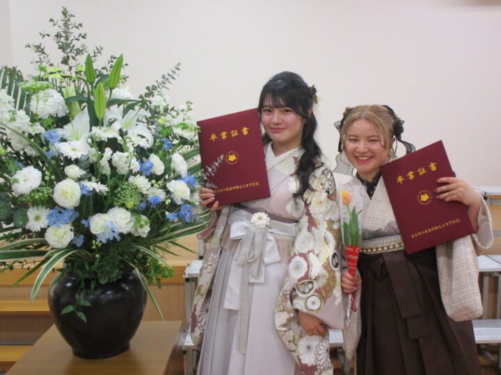 学校長からは、「人が人として豊かに生きるための基盤を守り、患者さんの人生に寄り添う存在になってほしい」と、創設者からは「一度発した言葉は取り戻せない。常に相手が元気になるような言葉を使うように」とお言葉をいただきました。